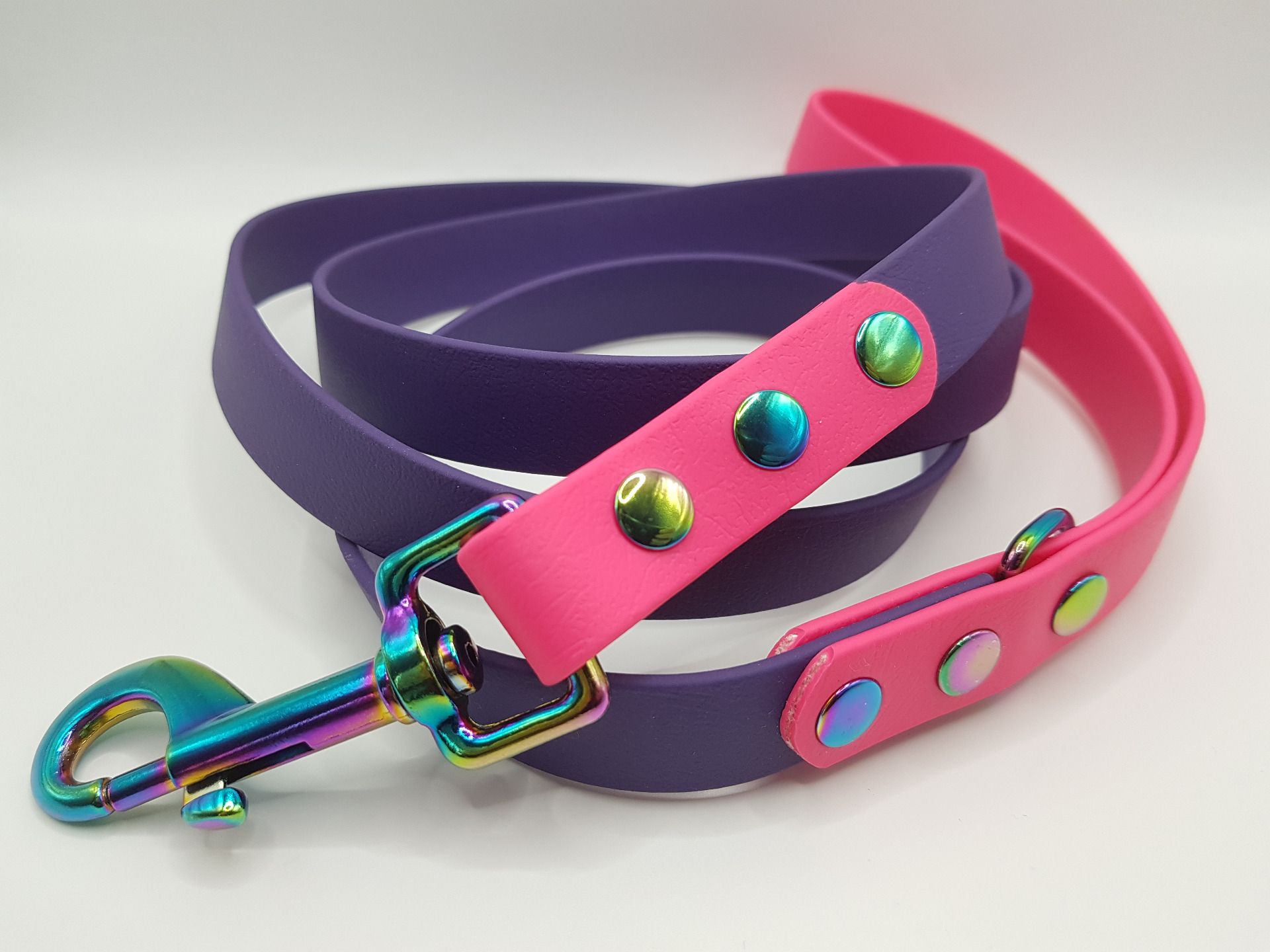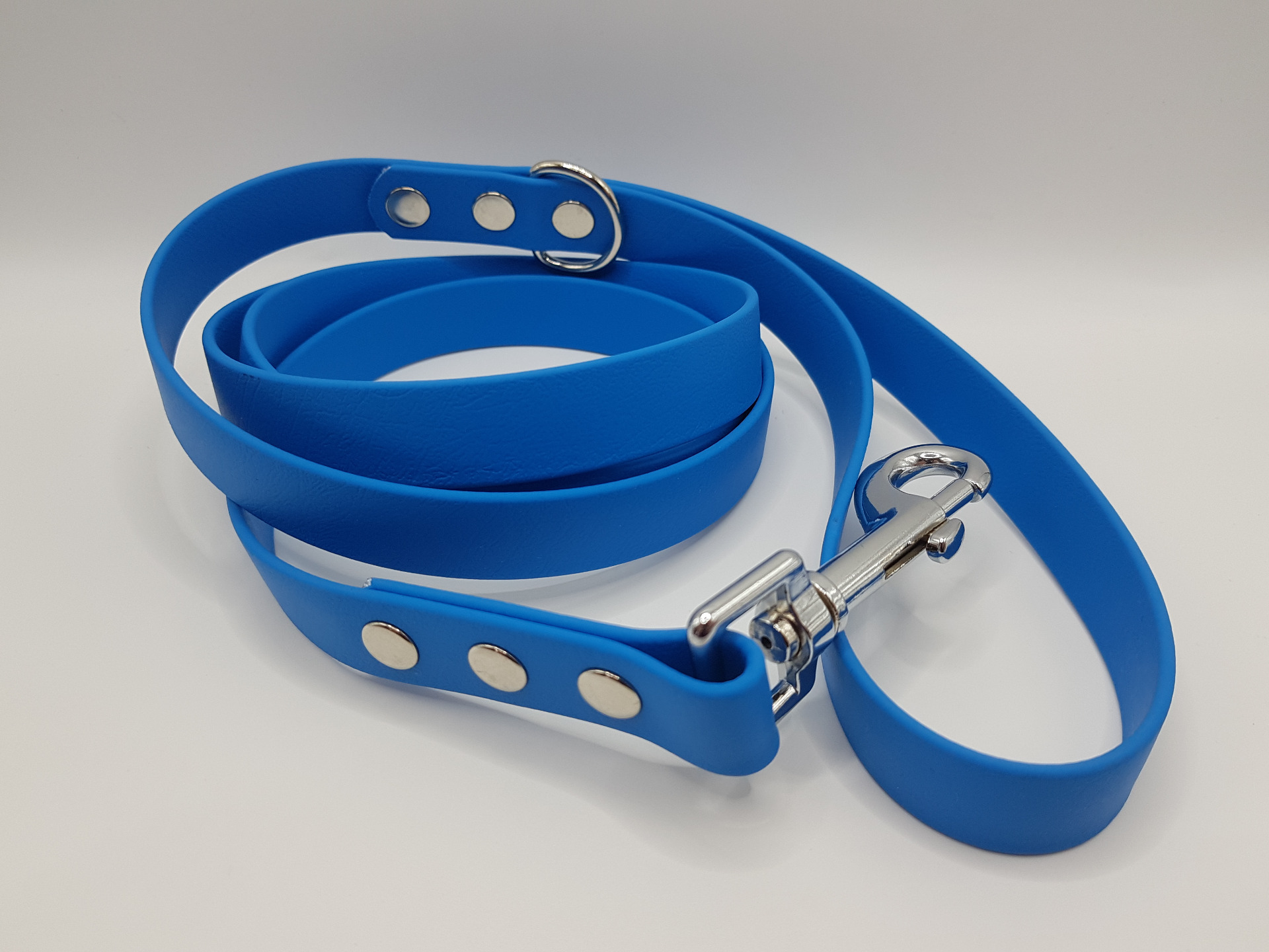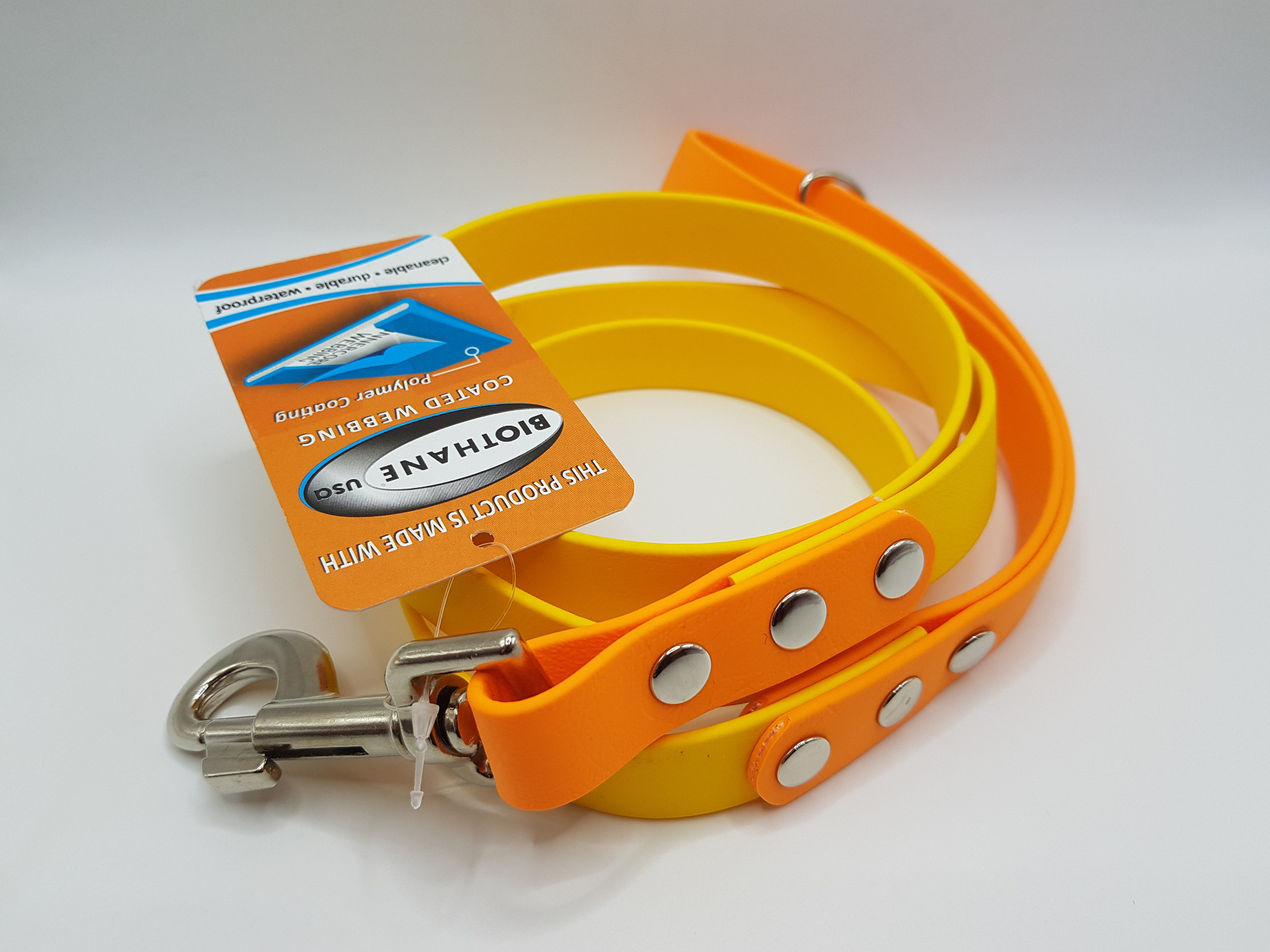 BioThane® je patentovaný americký výrobek. Jde o syntetický materiál, který se vzhledem podobá kůži. Je neuvěřitelně odolný. Nevytahuje se a k jeho poškození dochází až při tahu nad 450 kg. Je odolný vůči vodě, povětrnostním podmínkám, UV záření, plísním a bakteriím. Je velice dobře akceptován zvířaty. Snadno se udržuje, dopručuji pouze omývání vodou.